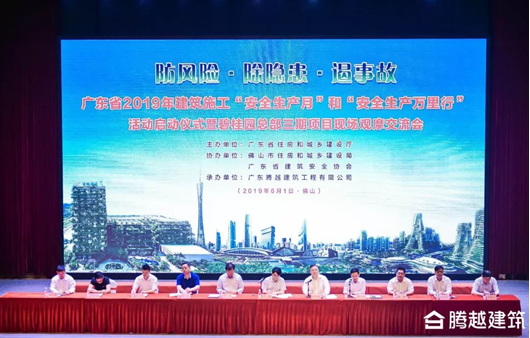 2019年6月1日,廣東省2019年建筑施工“安全生產(chǎn)月”和“安全萬里行”活動(dòng)啟動(dòng)儀式在廣東騰越碧桂園總部三期項(xiàng)目隆重舉行。廣東省住房和城鄉(xiāng)建設(shè)廳、廣東省各地市住建部門、安全監(jiān)督機(jī)構(gòu)、建筑業(yè)協(xié)會(huì)、建筑安全協(xié)會(huì)和各地施工、監(jiān)理單位代表共1000余人出席儀式。