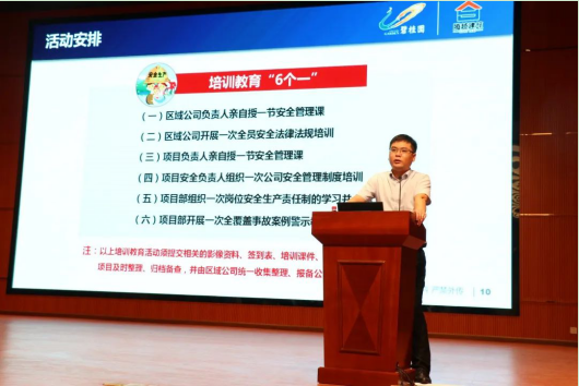 會(huì)議伊始,公司總經(jīng)理助理兼資深安全總監(jiān)呂偉軍對公司安全生產(chǎn)月活動(dòng)方案進(jìn)行了詳細(xì)地介紹,進(jìn)一步明確了公司安全生產(chǎn)月活動(dòng)開展的目的、意義及相關(guān)要求。隨后,莞深公司及智林機(jī)器人創(chuàng)研中心項(xiàng)目分別從區(qū)域公司和項(xiàng)目管理層面,就安全管控亮點(diǎn)及要點(diǎn)進(jìn)行了分享,充分展現(xiàn)了騰越建筑安全“三級管控”成效及成果。