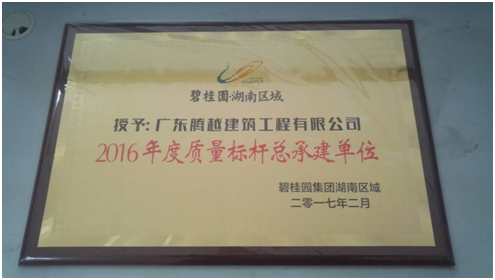 初夏的三湘大地,青色濃郁,催人奮進(jìn)。在這個(gè)萬類競(jìng)綠、一片繁茂的時(shí)節(jié),廣東騰越湖南分公司從碧桂園湖南區(qū)域接過“最佳配合子公司”、“2016質(zhì)量標(biāo)桿總承建單位”兩塊“沉甸甸”的獎(jiǎng)牌。