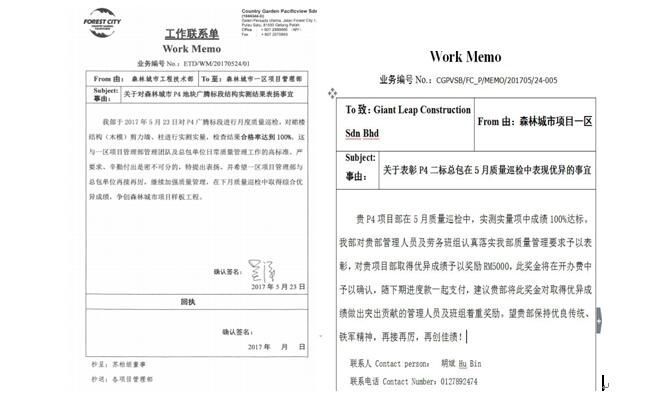 24日區(qū)域工程技術(shù)部就此次檢查結(jié)果對甲方項目管理一部進(jìn)行發(fā)函表彰,同時甲方項目管理一部也對森林城市P4項目發(fā)文表揚并給予了獎勵。