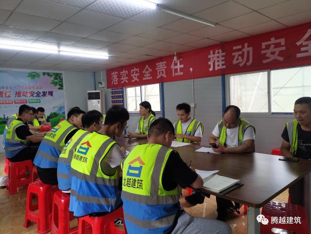 7月22-24日,騰越建筑浙江公司、江蘇公司接到“臺風”信息后,立即成立防臺風領導小組,第一時間組織防臺風應急策劃會議,確立項目防臺風應急預案,并任命項目經理為現場防臺風指揮長,同步成立現場安全防臺風領導小組。