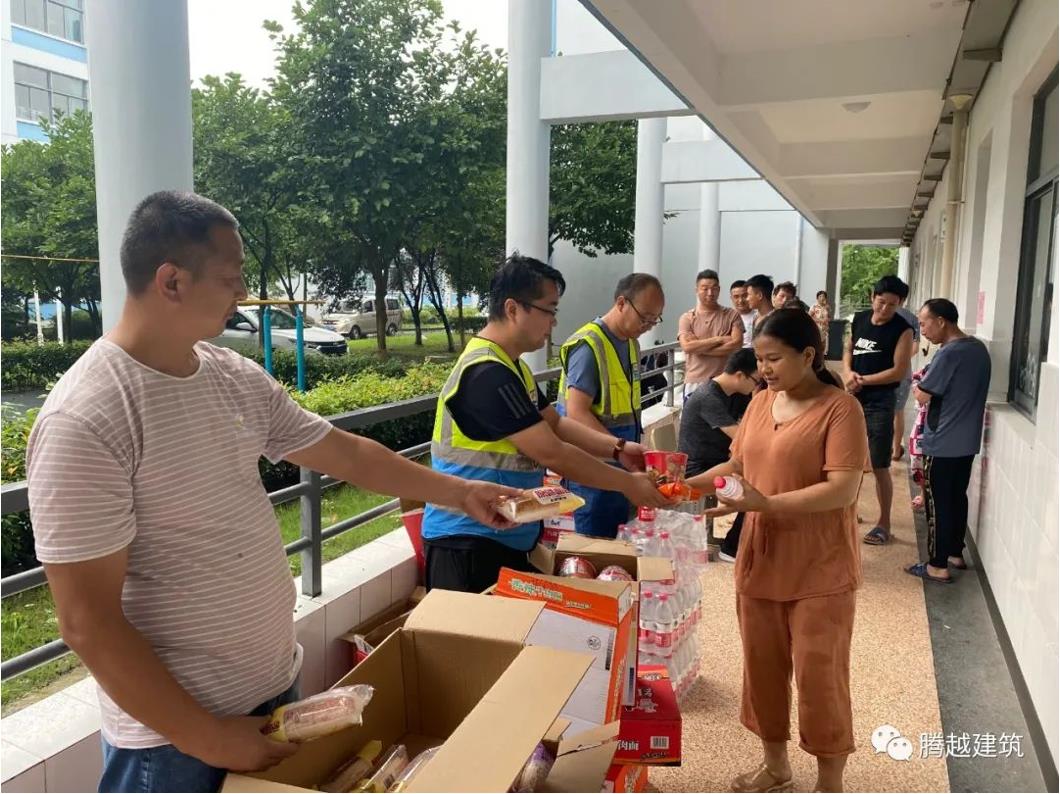 “煙花”臺風運動路徑復雜、風速大、風力強、影響范圍廣、持續(xù)時間長。騰越建筑浙江公司、江蘇公司通過提前做好人員轉移和安置工作準備,將涉臺的10余個項目人員安全轉移至臨近的體育館、學校、酒店等安全區(qū)域,累計轉移工友人數2881人,并為工友免費派發(fā)了1075箱水,超13470份面包、快餐等生活必備物資,確保轉移人員的生活必需。同時管理人員輪崗值守安全區(qū)域,隨時保證群眾的安全和需求得到滿足。