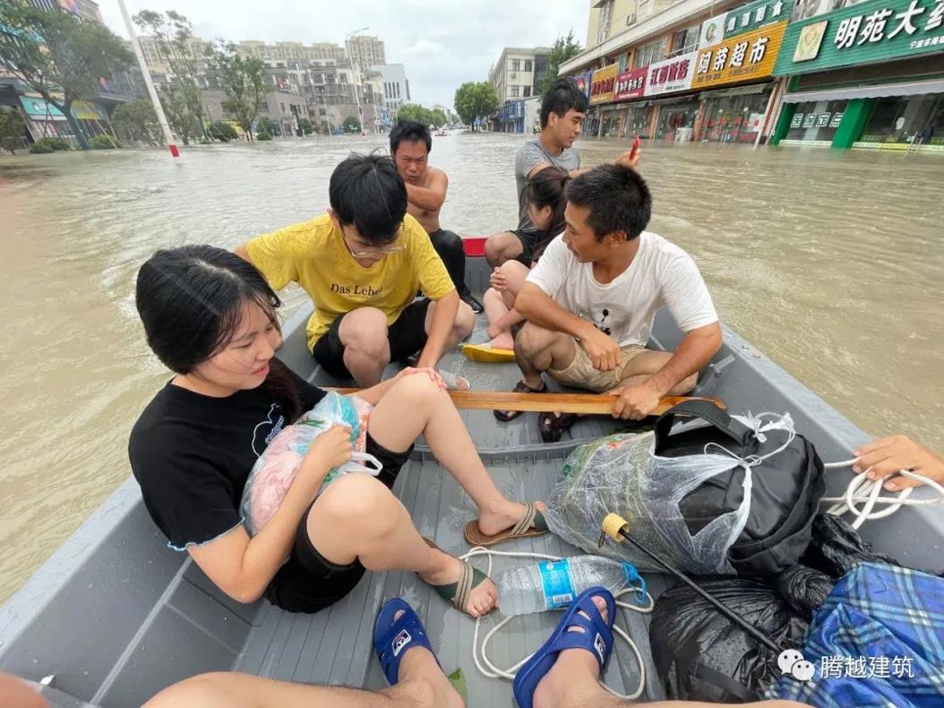 早在臺(tái)風(fēng)來臨前,寧波聯(lián)東U谷項(xiàng)目就在公司與項(xiàng)目的有序安排下,400余名工友已安全轉(zhuǎn)移。為確保項(xiàng)目“無一人遺漏”,項(xiàng)目負(fù)責(zé)人王斌帶著部分堅(jiān)守到最后的管理人員進(jìn)行最后的安全排查。當(dāng)排查完畢撤離時(shí)發(fā)現(xiàn),水深已經(jīng)過腰了,只能撐救生船離開項(xiàng)目。