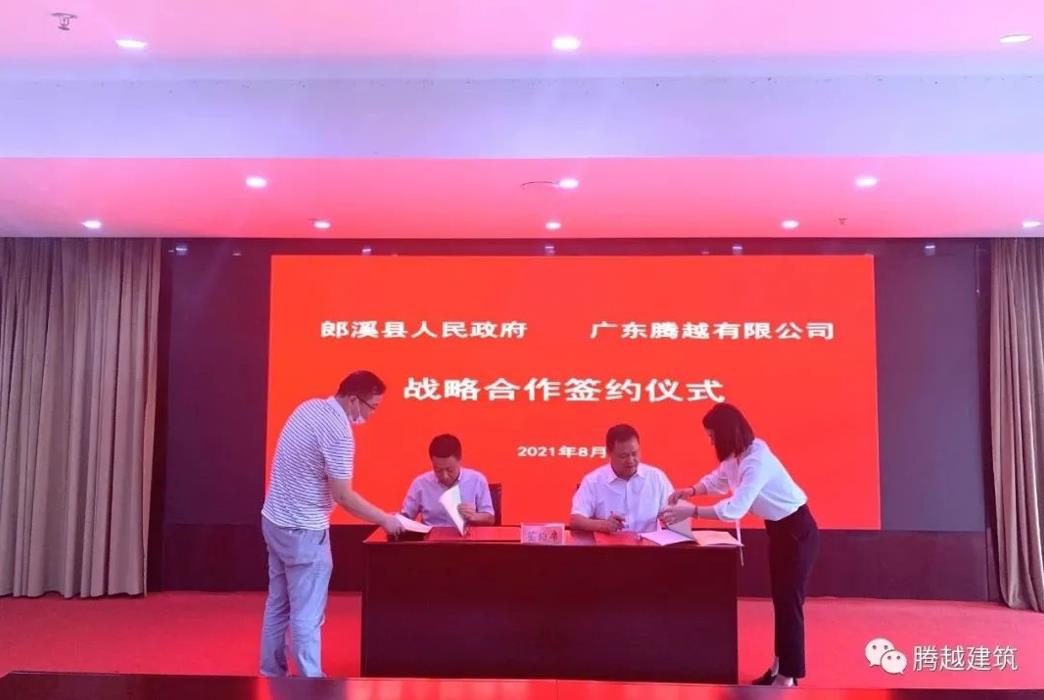 2021年8月16日,安徽省宣城市郎溪縣人民政府與騰越建筑在郎溪縣政府會議室隆重舉行簽約儀式,交流會上雙方進(jìn)行了深入友好的交流,并簽訂“戰(zhàn)略合作框架協(xié)議”。