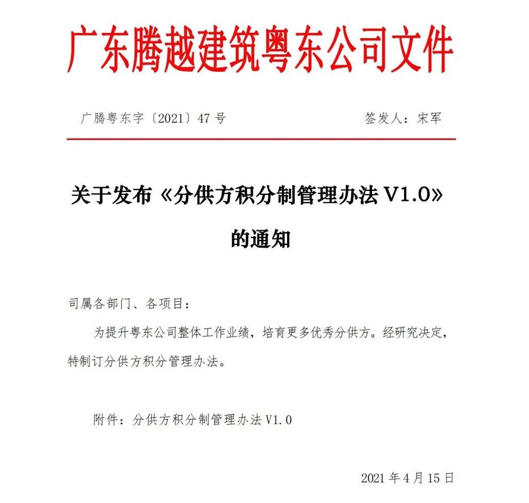 分供方管理上,粵東公司以“合作雙贏”為目標(biāo),從制度層面上做好管控,頒布了《分供方積分制管理辦法 V1.0》,該辦法列明加減分項(xiàng)、紅線管理、規(guī)范分包單位變更資料要求、合同付款方式等,以多部門聯(lián)動(dòng)考核為基準(zhǔn),針對排名前列的卓越、優(yōu)秀的單位給予非常優(yōu)惠政策與獎(jiǎng)勵(lì)機(jī)制,極大激發(fā)了分供方的合作熱情!