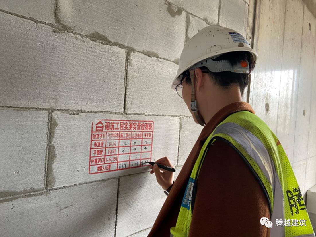 項目從策劃開始就擬爭創(chuàng)當?shù)氐臉藯U,但實際上張聰士的手下只有2名新入職的實習生,要把項目質(zhì)量管好創(chuàng)優(yōu),絕非易事。為此,他只能充分發(fā)揮自己“話癆”天性,手把手現(xiàn)場教學實測實量,點對點跟進兩位實習生的成長情況,并把實測實量、技術(shù)驗收等要點編寫成段子,直到兩位實習生能背誦為止。