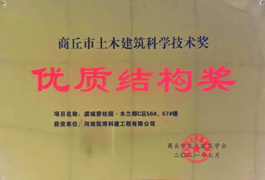商丘市土木建筑科學(xué)技術(shù)獎(jiǎng)-優(yōu)質(zhì)結(jié)構(gòu)獎(jiǎng)