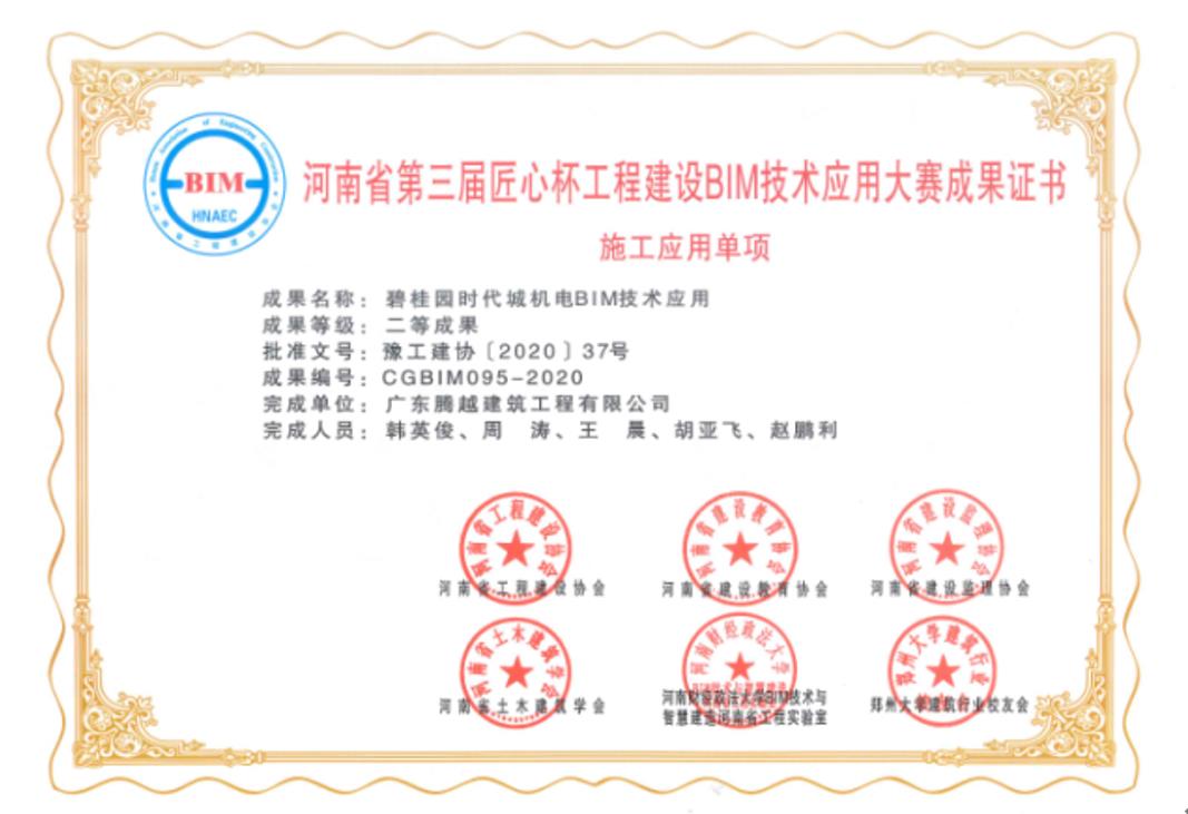河南省第三屆匠心杯工程建設(shè)BIM技術(shù)應(yīng)用大賽二等獎(jiǎng)
