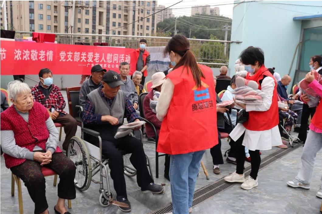 蘇北公司黨總支黨員們前往當(dāng)?shù)攸S山養(yǎng)老院,向老人們轉(zhuǎn)達(dá)了騰越建筑蘇北公司全員的問候和節(jié)日祝福,并送去了百余雙棉拖鞋,大米和油等慰問禮品。黨員們還與老人們親切地交談,叮囑老人要注意添加衣物,適量運動,保持心境開朗,讓老人們充分感受到騰越的溫暖關(guān)懷。