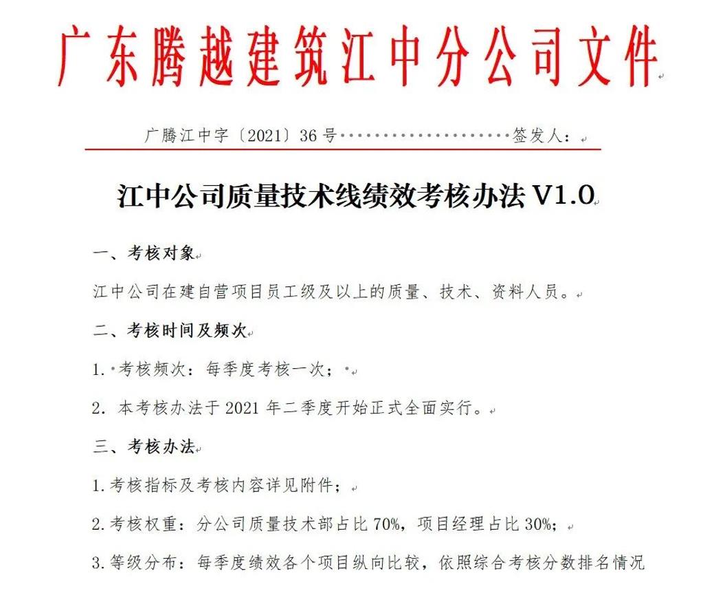 在現(xiàn)場(chǎng)管理方面,江中公司嚴(yán)格執(zhí)行集團(tuán)和公司相關(guān)質(zhì)量管控文件,并在內(nèi)部推行全員責(zé)任考核,與棟號(hào)長(zhǎng)和勞務(wù)班組簽訂責(zé)任狀,形成勞務(wù)先行、棟號(hào)長(zhǎng)全責(zé)鋪墊,項(xiàng)目經(jīng)理統(tǒng)籌運(yùn)作,區(qū)域領(lǐng)導(dǎo)班子高端對(duì)接的“線條式問責(zé)”垂直管理機(jī)制。