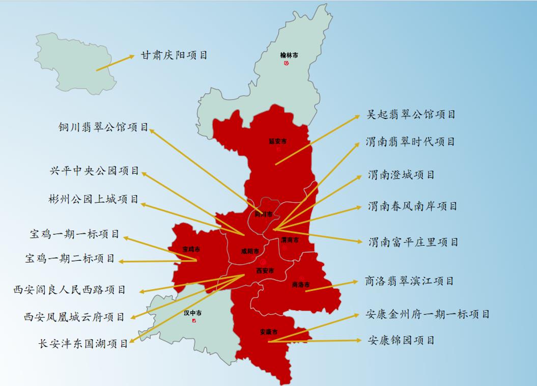 短短3年,陜西公司從安康出發(fā),以安康金州府項目為起點(diǎn),逐步延伸西安、寶雞、彬州、渭南、興平、閻良、澄城、吳起、商洛地區(qū),點(diǎn)燃發(fā)展燎原星火。目前,陜西公司已參與三秦各市建設(shè),并不斷輻射周邊區(qū)域,在建項目超22個,已成功扎根陜西市場。