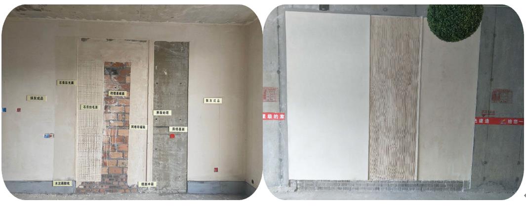 淮北一期一標(biāo)項目主體結(jié)構(gòu)采用拉片式鋁模,實現(xiàn)全剪外墻、免抹灰,徹底解決了傳統(tǒng)木模結(jié)構(gòu)抹灰存在的空鼓、開裂、強度不足等問題,降低了交付投訴風(fēng)險;項目砌體結(jié)構(gòu)采用加氣塊,實現(xiàn)薄抹灰,采用“連鎖砌塊”工藝設(shè)置圈梁、構(gòu)造柱等二次結(jié)構(gòu),提升了工效,減少了工期。
