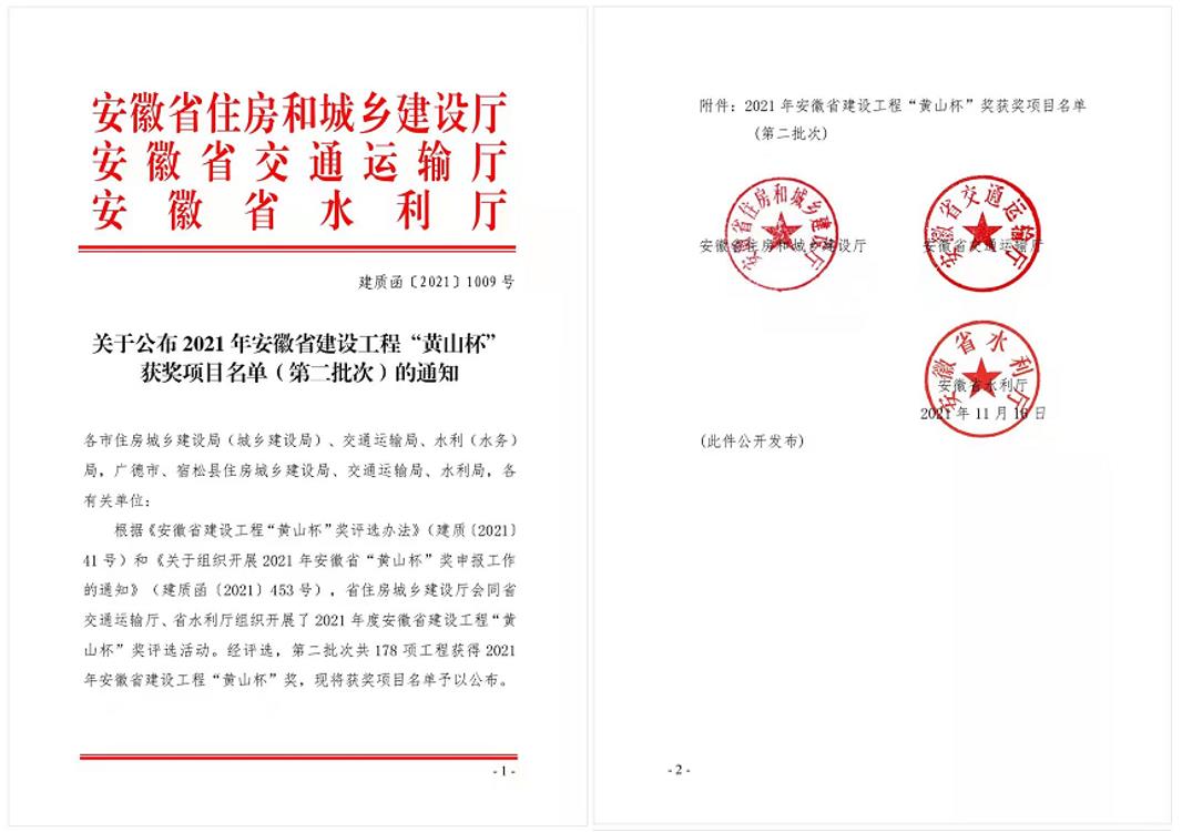 “黃山杯”是安徽省建筑行業(yè)建設(shè)工程質(zhì)量的最高榮譽獎項,由建筑施工企業(yè)自愿申報,經(jīng)市(州)建設(shè)行政主管部門和省級有關(guān)部門擇優(yōu)推薦后進入評選。評選過程要經(jīng)過形式審查、現(xiàn)場復(fù)查、評審委員會評審及廳長辦公室審定多重程序,層層篩選,標(biāo)準(zhǔn)之高可想而知。