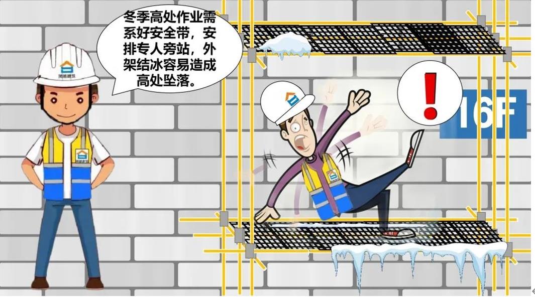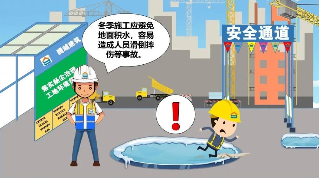冬季作業(yè),在施工作業(yè)前,對(duì)斜道、通行道、爬梯等作業(yè)面上的霜凍、冰塊、積雪要及時(shí)清除,同時(shí)地面如有積水需及時(shí)處理,避免地面結(jié)冰造成人員滑倒摔傷;已存在結(jié)冰無法處理時(shí)需設(shè)置警示牌提醒路人;現(xiàn)場(chǎng)腳手架搭設(shè)接高前必須將鋼管上的積雪清除,等到霜凍、冰塊融化后再施工;若通道防滑條有損壞要及時(shí)補(bǔ)修。