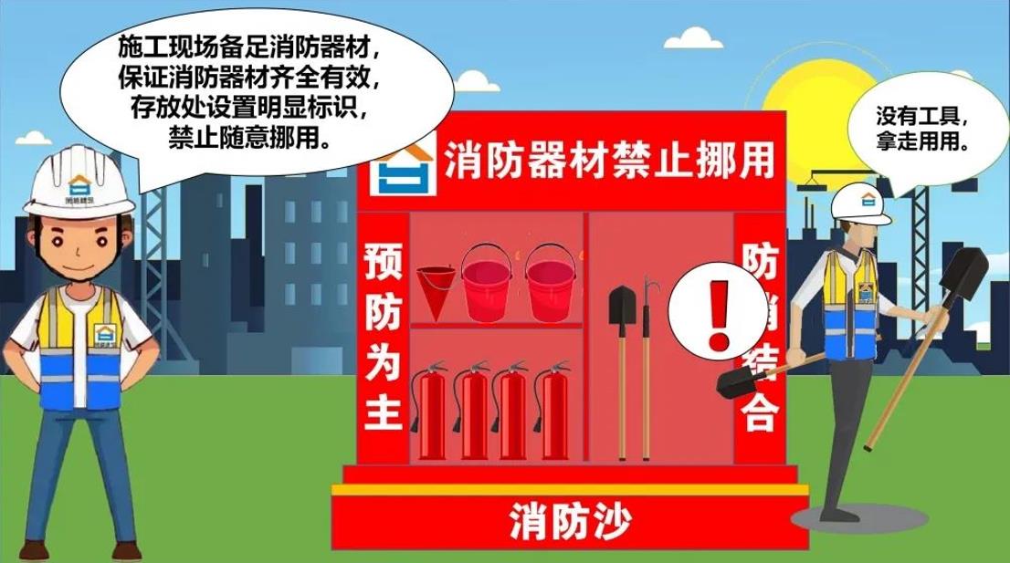 施工現(xiàn)場(chǎng)需要配備消防器材柜,保證其中物品齊全可用,物資儲(chǔ)備充足,不得隨意挪用消防器材,防止有特殊情況發(fā)生時(shí)無法及時(shí)消除,導(dǎo)致事故發(fā)生。