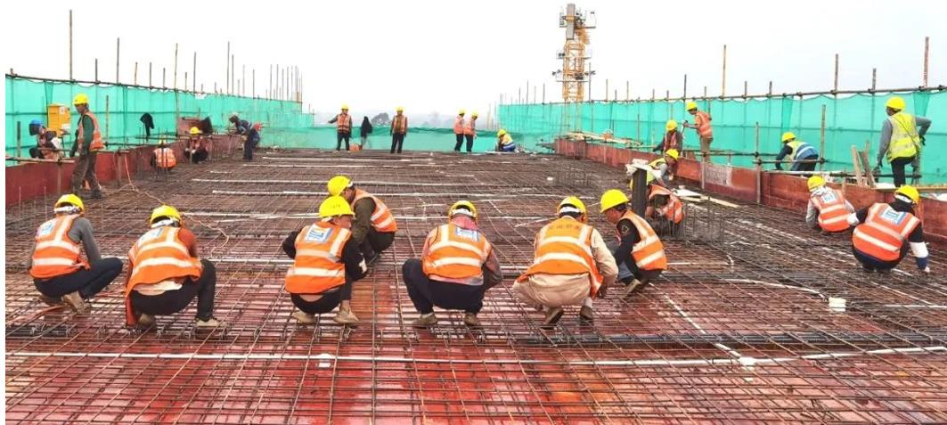 其次,項目還分批次規(guī)劃人力、設(shè)備、材料投入,確保施工最高峰時期10個工作面都能滿足同時施工。通過項目科學(xué)布排,全員全力以赴,項目每天現(xiàn)場至少保障有200個木工、120個鋼筋工、150個鐵工,為項目后期建設(shè)搶占了絕佳的時間。
