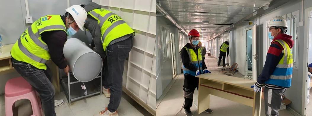 方艙醫(yī)院和方艙隔離點(diǎn)建設(shè)是打贏全市疫情防控遭遇戰(zhàn)、阻擊戰(zhàn)的重要保障。時(shí)間緊,任務(wù)重,騰越建筑從接到援建指令,到員工動(dòng)員集結(jié),兩碼檢查,分配車輛,僅用時(shí)30分鐘。援建隊(duì)伍到達(dá)施工現(xiàn)場后,火速開展各項(xiàng)工作。根據(jù)部署安排,有序進(jìn)行現(xiàn)場部分水電管道安裝,臨時(shí)設(shè)施建造,施工材料及隔離艙內(nèi)設(shè)施的裝載、卸載、裝配工作。