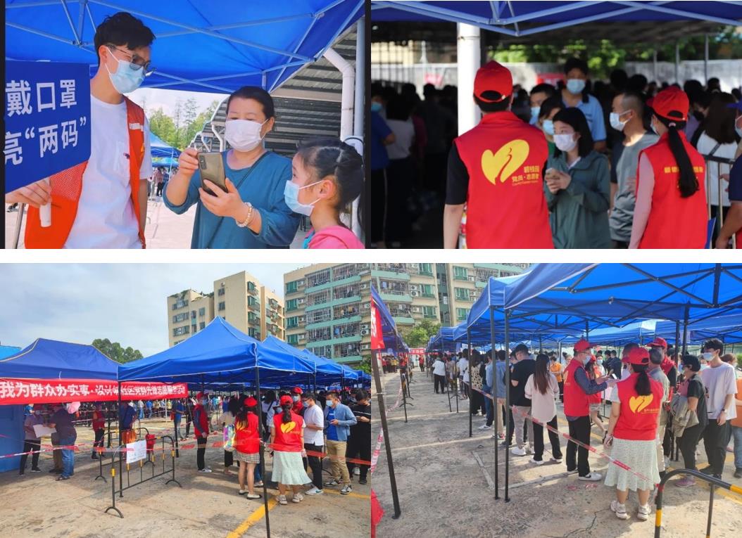 2022年4月11日,佛山市順德全區(qū)大范圍開展全員核酸檢測,面對近期嚴峻的防疫形勢,北滘鎮(zhèn)多個核酸檢測點人滿為患。疫情之下,騰越建筑聞訊而動,吹響志愿者“集結號”,積極溝通當地社區(qū)及居委會,第一時間派出50余名優(yōu)秀志愿者前往北滘鎮(zhèn)人力資源市場核酸檢測點,助力全員核酸檢測工作。