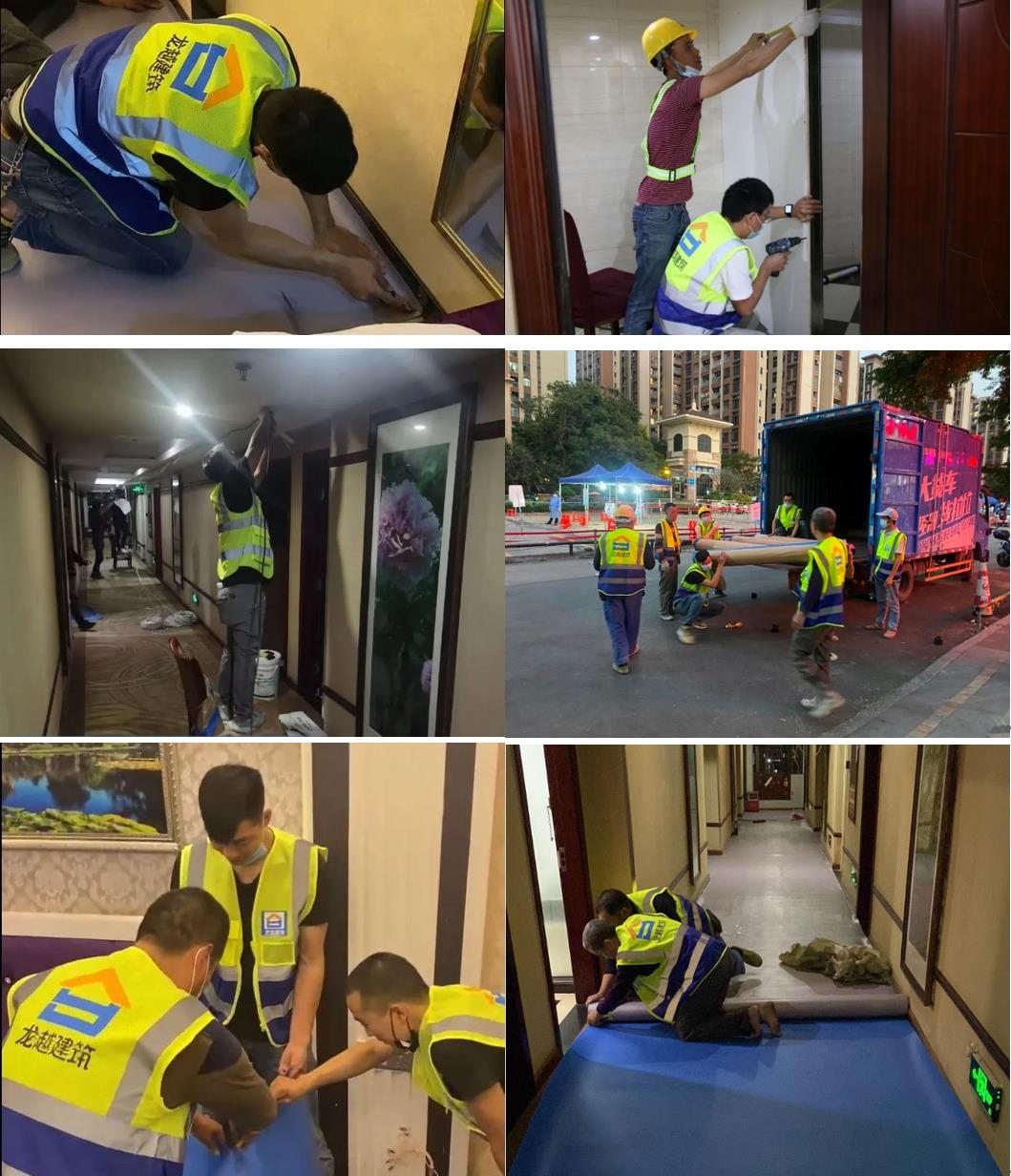 在騰越建筑黨委統(tǒng)一部署下佛肇公司及項(xiàng)目臨時(shí)黨支部全力協(xié)調(diào)從4月11日上午10時(shí)左右接到任務(wù)開始短短30分鐘內(nèi)項(xiàng)目已迅速集結(jié)165名工人20多名志愿者和管理人員進(jìn)駐現(xiàn)場(chǎng)并在2小時(shí)內(nèi)緊急采購(gòu)?fù)戤吀黝惙酪呶镔Y包括膠布400卷、地膠3000平米圍擋145米、窗紙20卷、紫外線燈60盞污水回收管道200米、安保攝像頭50套......為后期圓滿交付做足前置準(zhǔn)備!