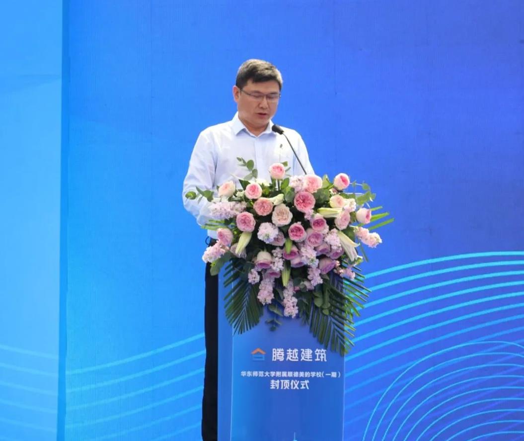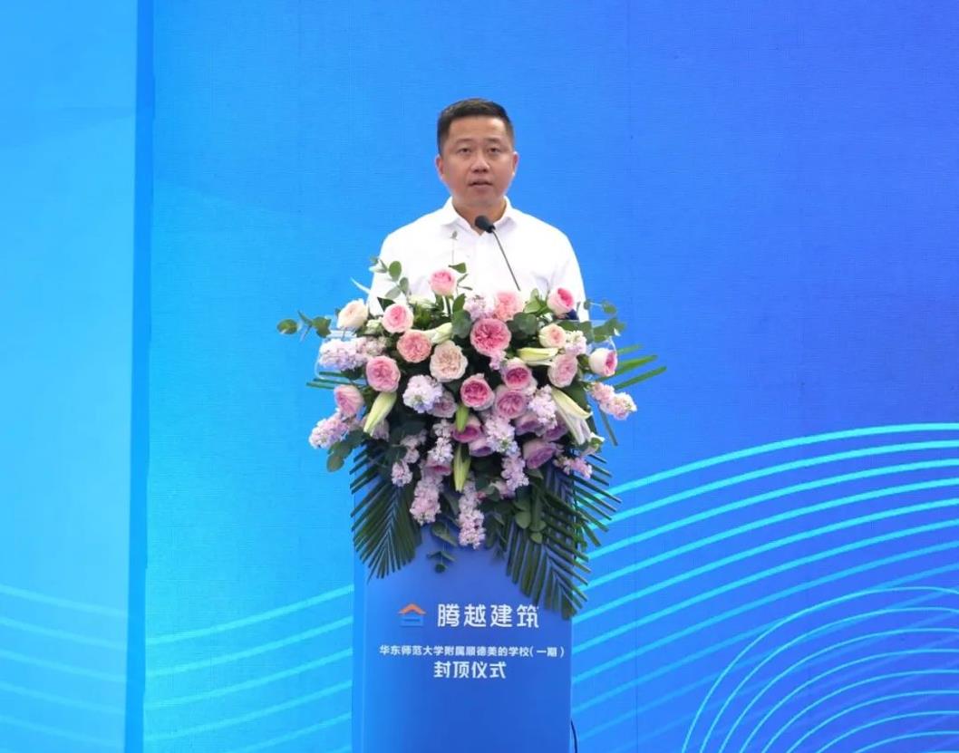 上午10時(shí)18分,封頂儀式正式開始,騰越建筑總經(jīng)理馬小軍代表騰越建筑致辭。馬小軍總表示區(qū)委區(qū)政府、鎮(zhèn)委鎮(zhèn)政府把華東師大附屬順德美的學(xué)校這項(xiàng)重要的民生工程交給騰越建筑,是對騰越建筑履約能力的高度信任!是對騰越建筑打造精品的殷切期望!也是對本土建企高質(zhì)量發(fā)展的支持和鼓勵(lì)!騰越建筑深感榮幸,也深知使命光榮,責(zé)任重大!