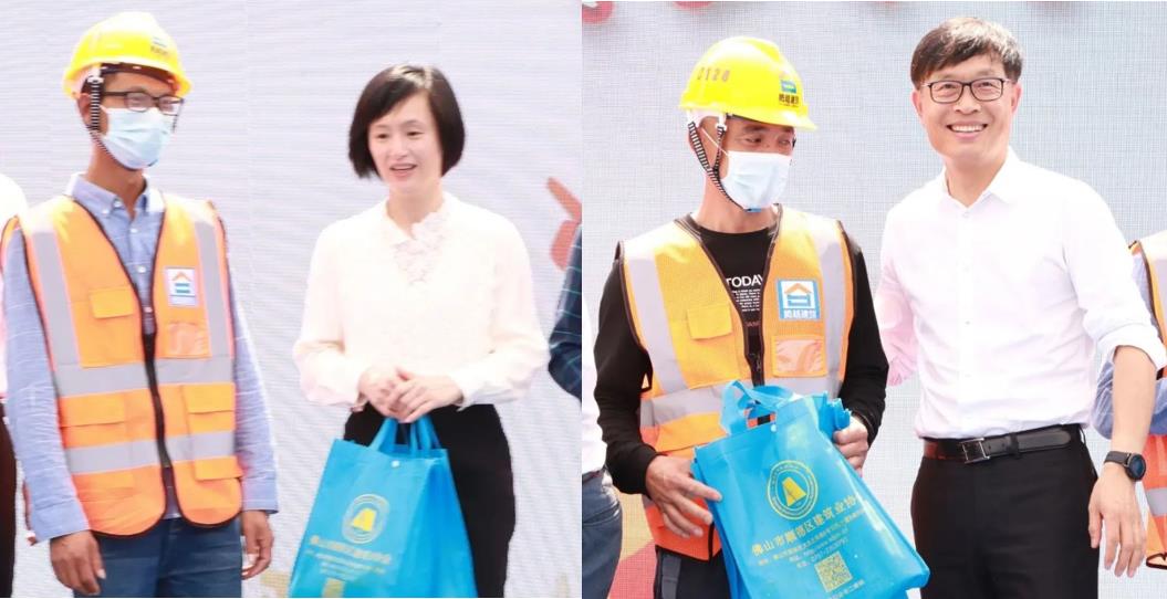 封頂儀式期間,北滘鎮(zhèn)政府及順德區(qū)建筑業(yè)協(xié)會(huì)還組織開展了建筑工地“送關(guān)懷”活動(dòng),對堅(jiān)守在一線的建筑工人及奮斗140天的騰越鐵軍表以關(guān)懷。