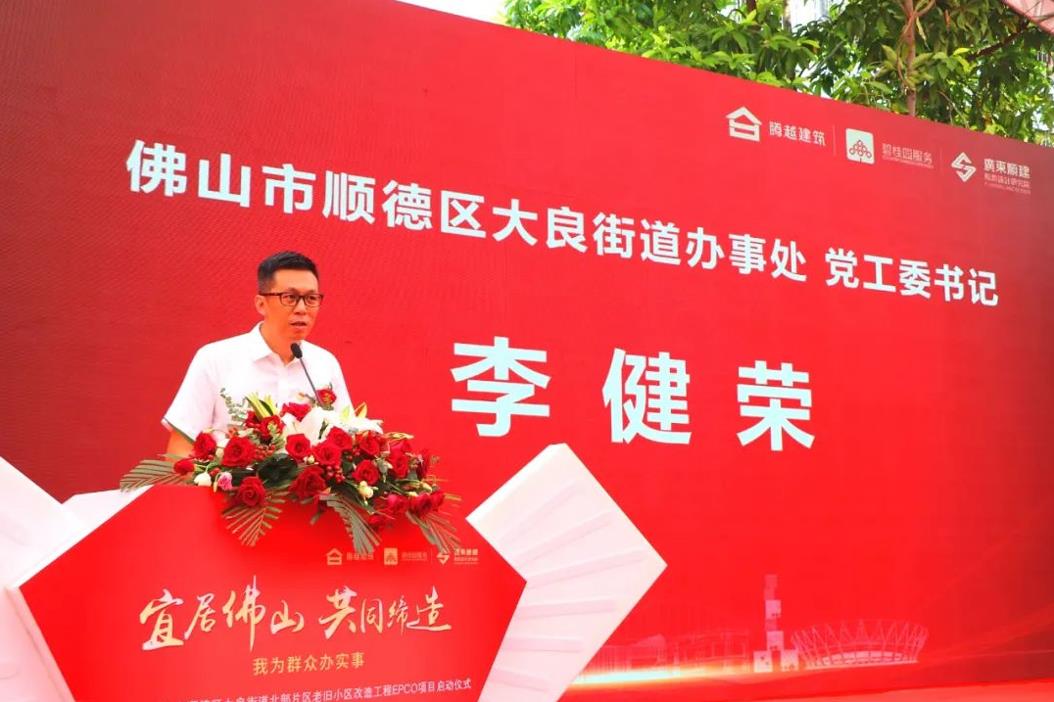 碧桂園集團(tuán)黨委委員、騰越建筑黨委書記、總經(jīng)理馬小軍代表騰越建筑進(jìn)行致辭,馬小軍總首先對(duì)一直以來關(guān)心和支持項(xiàng)目推進(jìn)的各級(jí)政府及集團(tuán)領(lǐng)導(dǎo)表示感謝!此次大良老舊小區(qū)改造項(xiàng)目,率先推行碧桂園“EPCO”模式充分體現(xiàn)了省住建廳領(lǐng)導(dǎo)為廣東民生發(fā)展深謀遠(yuǎn)慮的戰(zhàn)略眼光,騰越建筑非常榮幸成為該項(xiàng)目承建單位,對(duì)于企業(yè)而言,這既是一份殊榮,也是對(duì)騰越建筑近年來深耕市場(chǎng),鉆研綠色、安全、科技建造的充分肯定。騰越建筑將持續(xù)探索推進(jìn)老舊小區(qū)改造的創(chuàng)新模式與方法,不斷為推動(dòng)城市有機(jī)更新,改善人居環(huán)境貢獻(xiàn)更大力量。