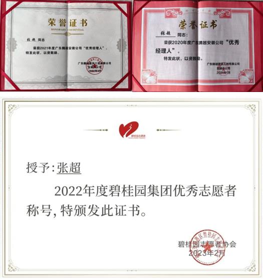 張超,中國共產(chǎn)黨黨員,騰越建筑安徽分公司綜合管理部人力行政經(jīng)理,加入公司后以飽滿的工作熱情與扎實的工作作風為人稱道,2020-2021年度連續(xù)獲得“優(yōu)秀經(jīng)理人”稱號、2022年獲碧桂園集團“優(yōu)秀志愿者”稱號、“集團一星講師”。