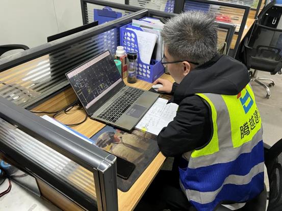 李夢(mèng)陽(yáng)與同事查看現(xiàn)場(chǎng)工作