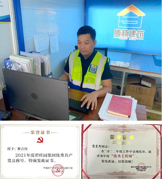 黎吉向,男,漢族,中國(guó)共產(chǎn)黨員,曾任騰越建筑海南分公司海南文昌高隆灣項(xiàng)目聯(lián)合黨支部書記,現(xiàn)任海南分公司海南之心聯(lián)合黨支部宣傳委員、海南之心A15-02地塊項(xiàng)目勞務(wù)經(jīng)理,是大家在工作上有口皆碑的“百事通”“文武”全能型人才,獲2021“碧桂園集團(tuán)優(yōu)秀共產(chǎn)黨員”2022碧桂園海南區(qū)域項(xiàng)目“優(yōu)秀工程師”稱號(hào)。