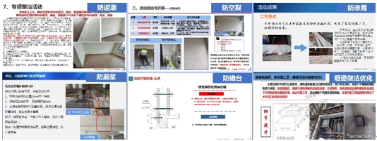 截止11月30日,各子分公司累計(jì)提報(bào)18項(xiàng)研究成果,累計(jì)獲取省級(jí)以上質(zhì)量創(chuàng)優(yōu)獎(jiǎng)項(xiàng)共23個(gè),為施工現(xiàn)場(chǎng)抹灰開(kāi)裂、屋面保護(hù)層開(kāi)裂、外墻外窗滲漏、管根滲漏、返潮、錯(cuò)臺(tái)等常見(jiàn)行業(yè)質(zhì)量通病提供了諸多解決方案。同時(shí)也總結(jié)了更優(yōu)秀的降本提質(zhì)做法,如新型鋁模傳料口模具、煙道免卸荷免吊模工藝、新型防水材料技術(shù)等。